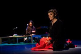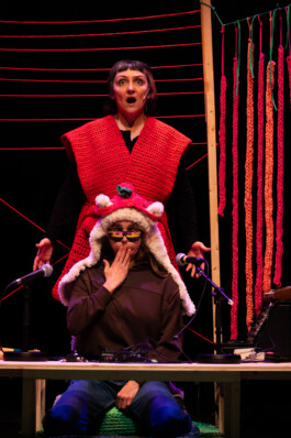 Dans un dispositif sobre, Marina Le Guennec, accompagnée au plateau par la musicienne électro Emilie Rougier, porte en voix, corps et mouvement une version engagée et rock du petit chaperon rouge pour les plus jeunes. Ensemble, elles proposent un spectacle musical joyeux et empouvoirant.